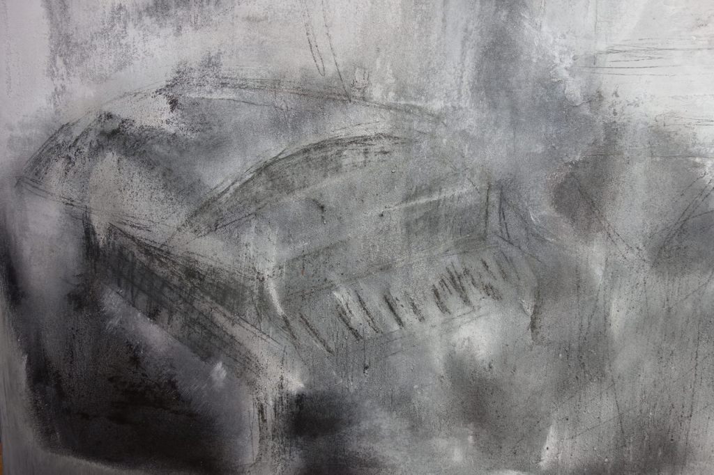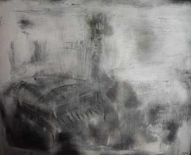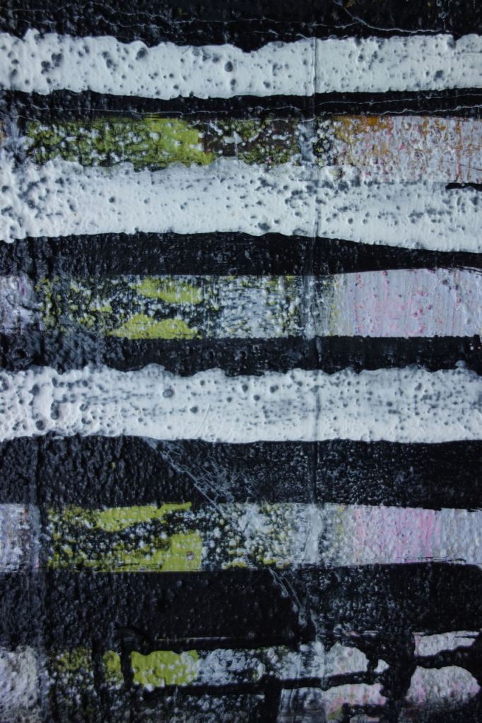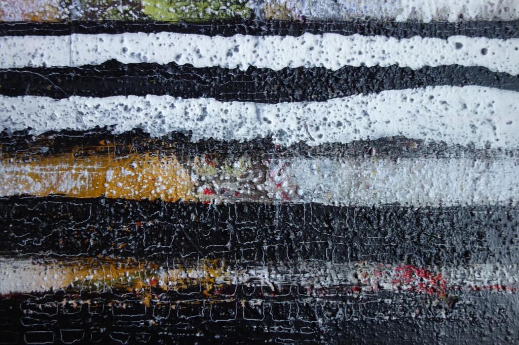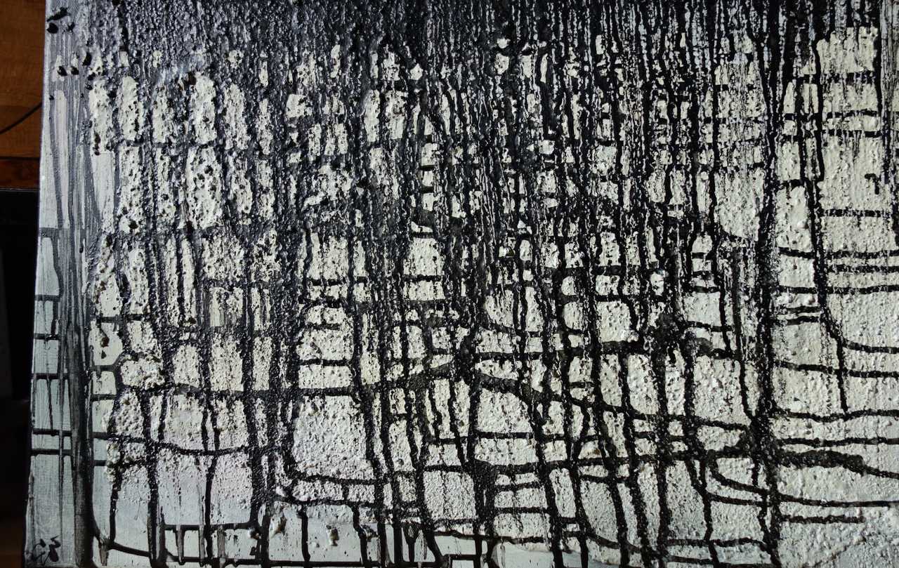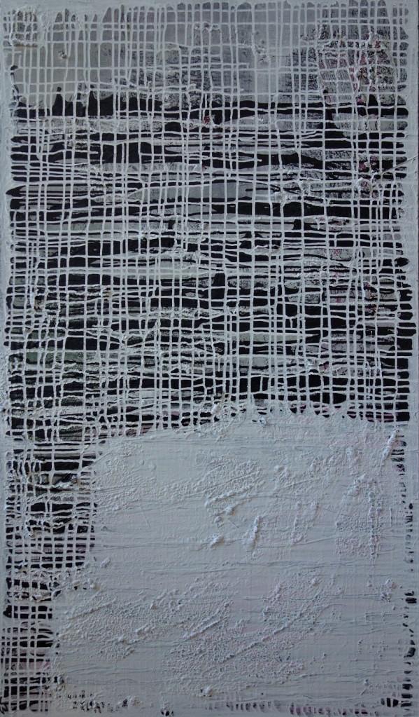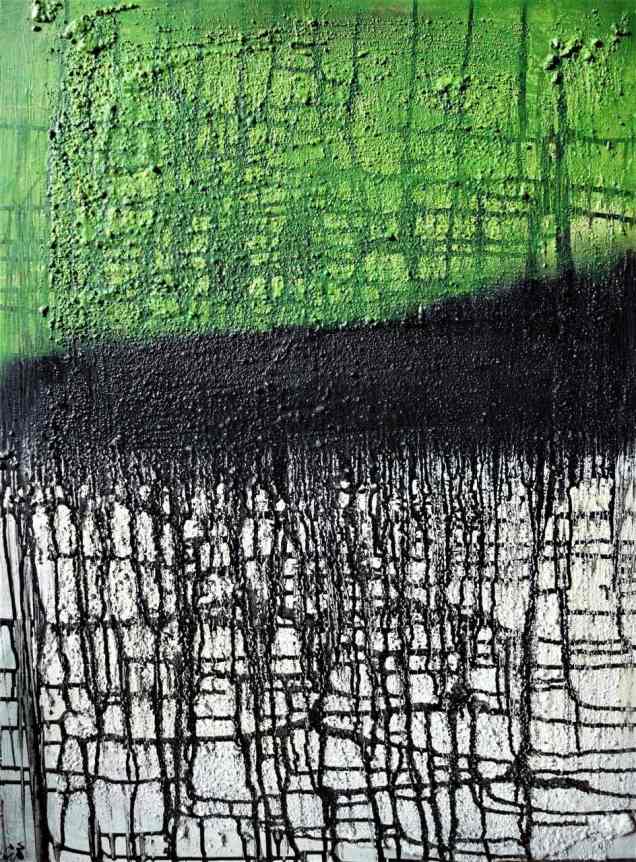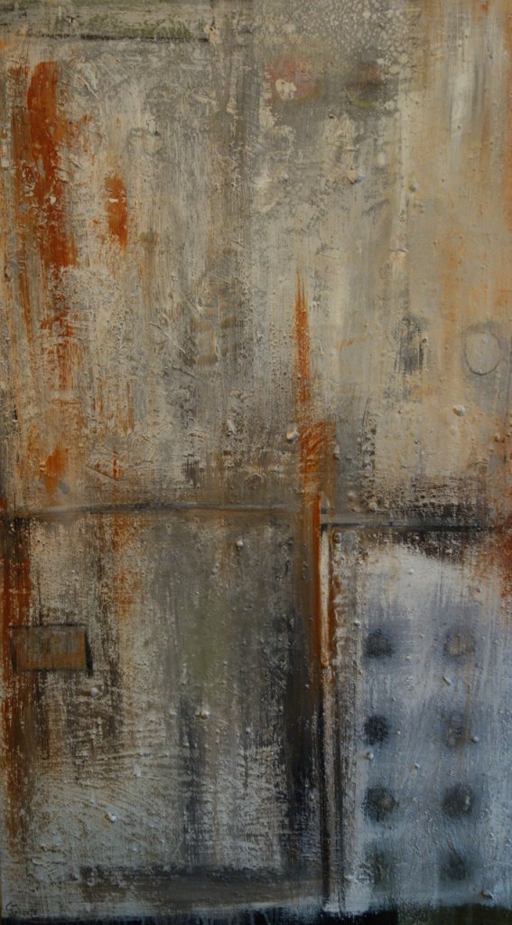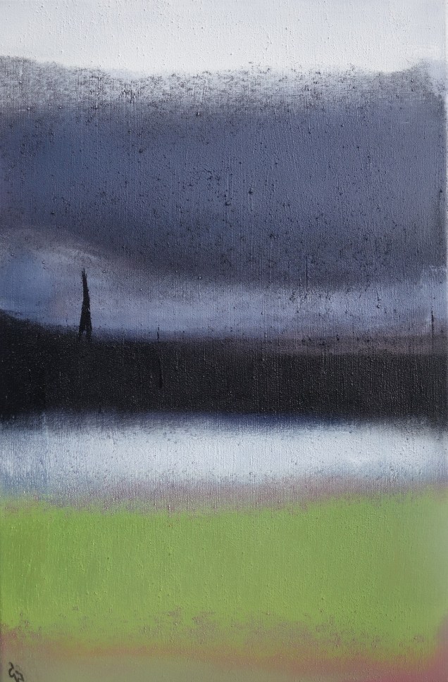 Das abstrakte Werk zeigt eine ruhige, fast meditative Szene aus Wasser, Zaun und Horizont. Mit Spachtel gezogene Linien und strukturierte Flächen erzeugen Tiefe und Bewegung. Trotz der Schlichtheit regt das Bild zum Nachdenken über Grenzen, Trennung und Verbindung an – über das, was uns teilt, und das, was uns verbindet. Es lädt dazu ein, innezuhalten und den eigenen Blick auf Freiheit, Abgrenzung und Übergänge zu hinterfragen.