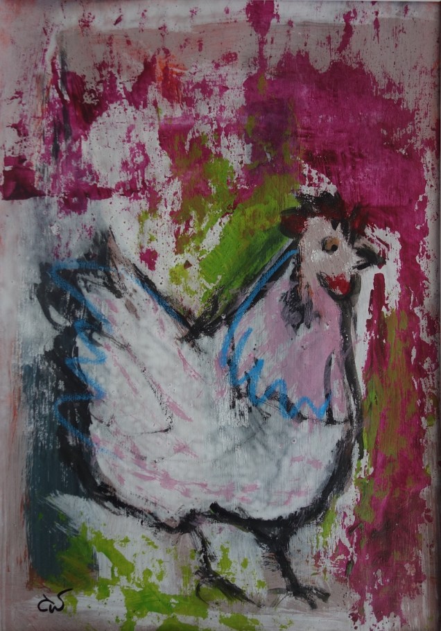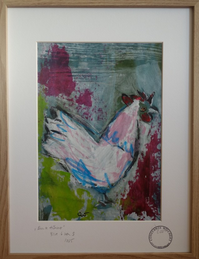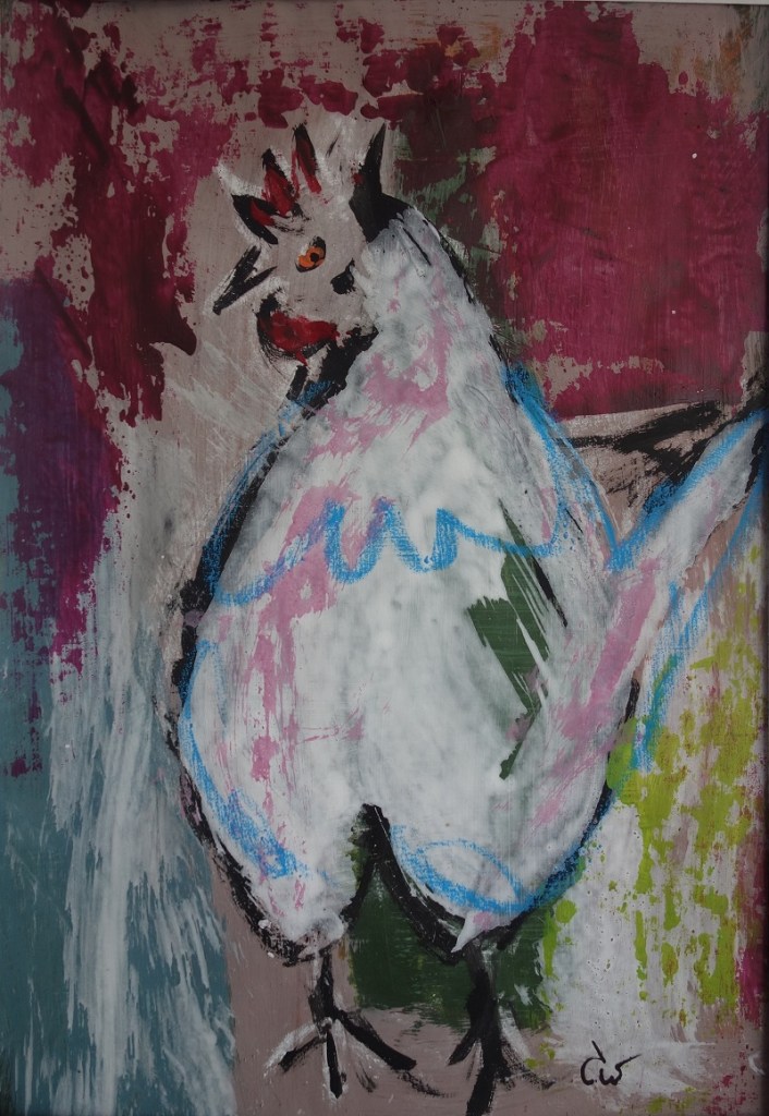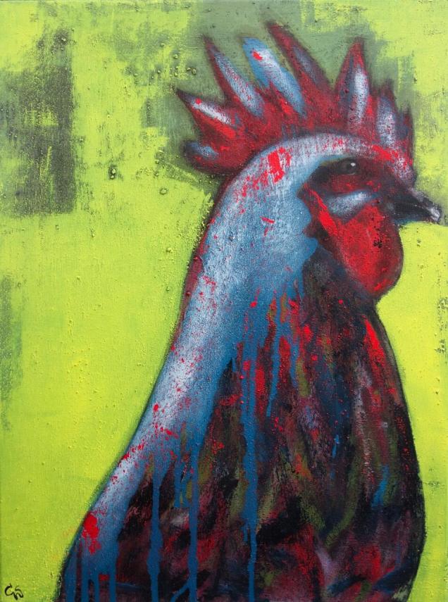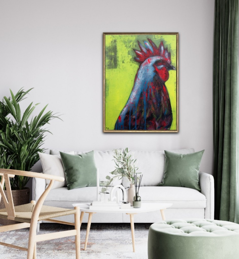Dieser rote Hahn steht für Selbstbewusstsein, Kraft und zugleich Ruhe. Mit leuchtenden Farben und lebendiger Ausstrahlung soll das Werk Emotionen wecken und den Betrachter einladen, sich auf die Darstellung des „Roten Hahns“ und die darin spürbare Energie einzulassen.