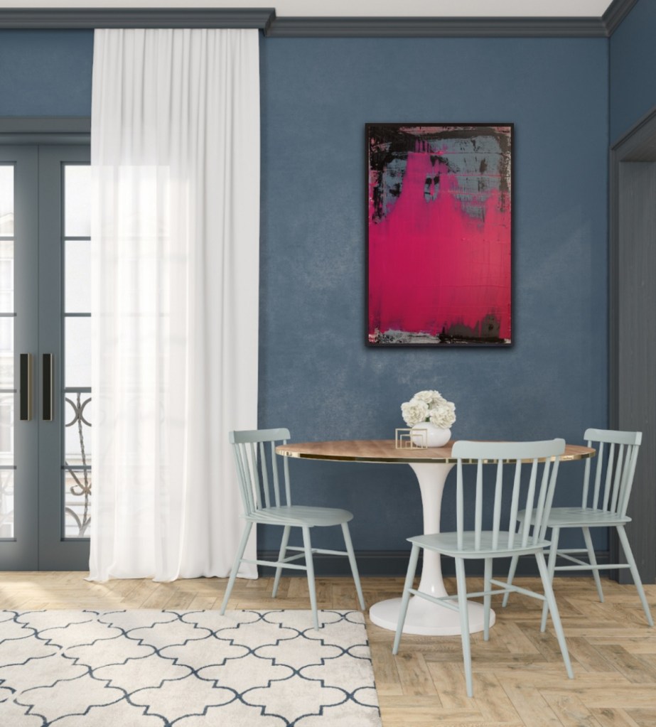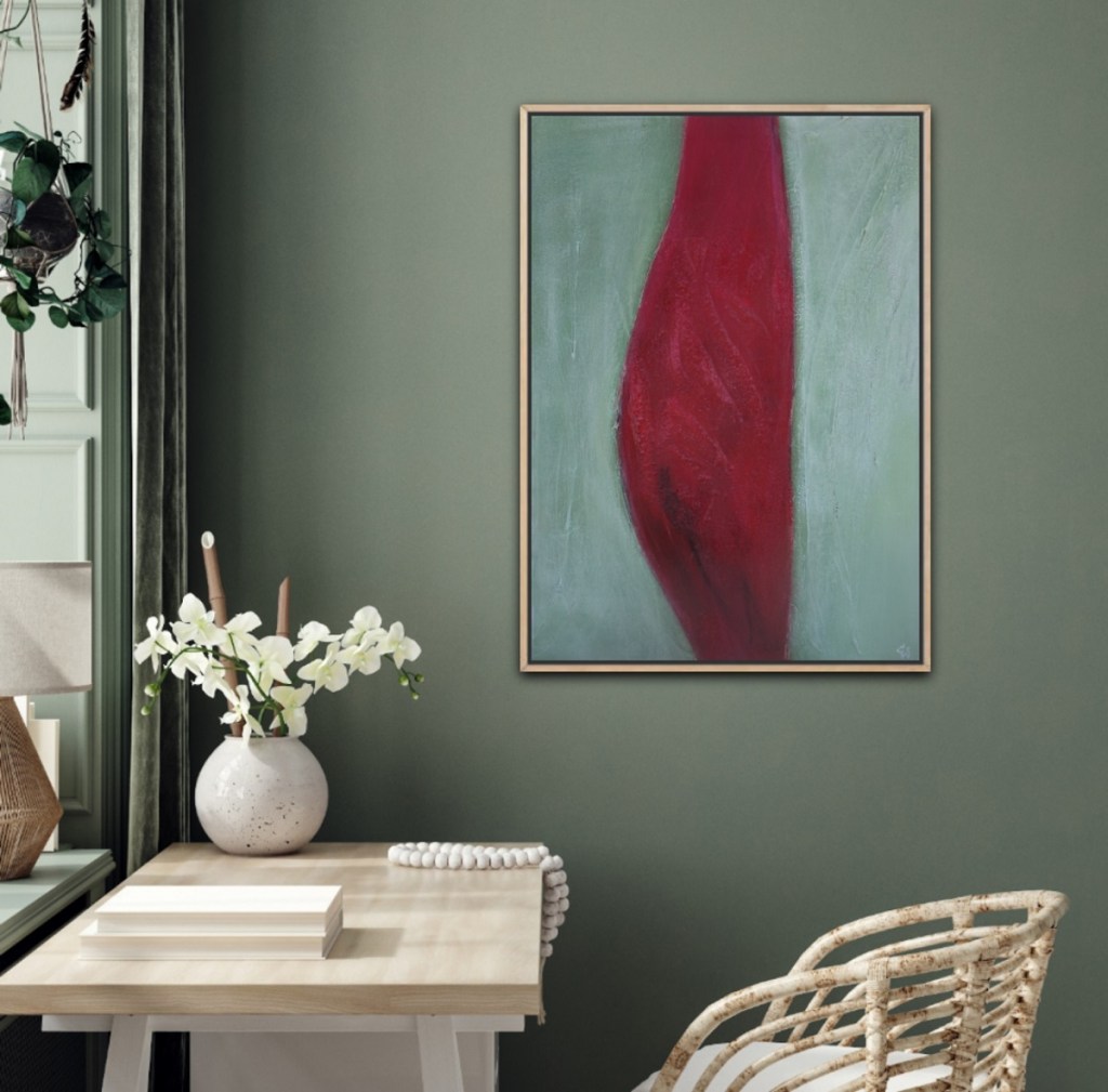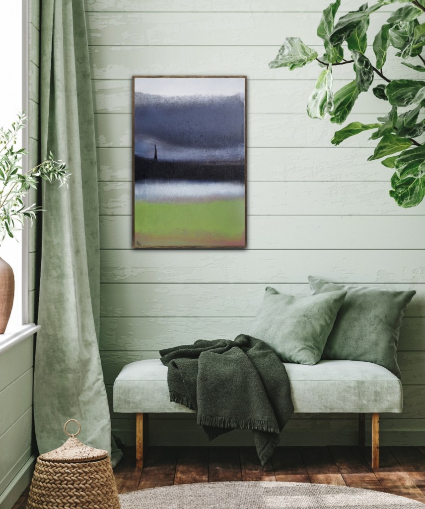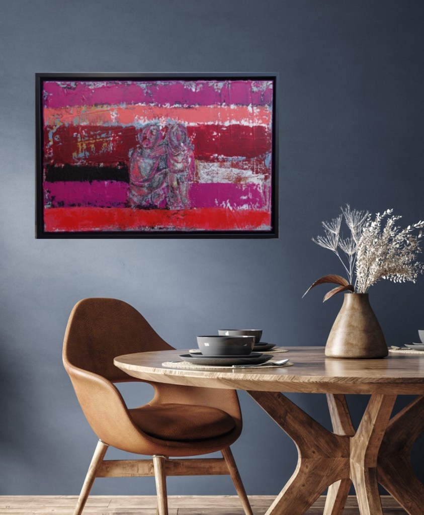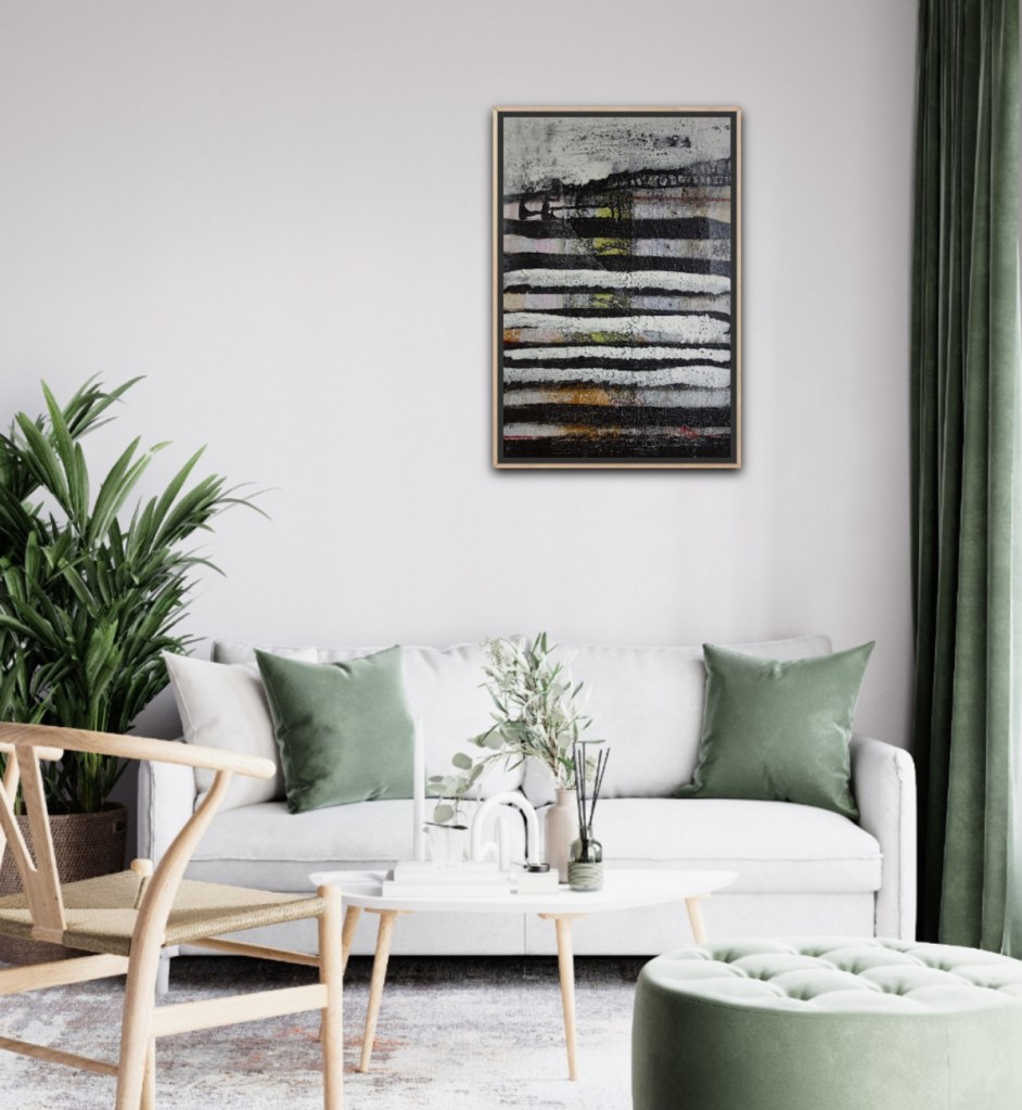 Bitte beachte: Die Bilder, die virtuell in Wohnräume eingefügt sind, dienen lediglich als Beispiel, um zu zeigen, wie die Kunstwerke im Raum wirken können – gegebenenfalls auch mit Zierrahmen.