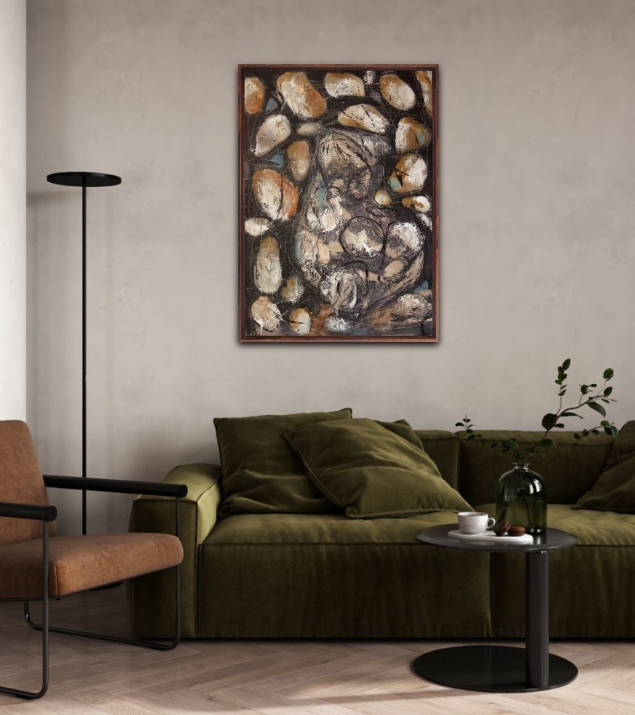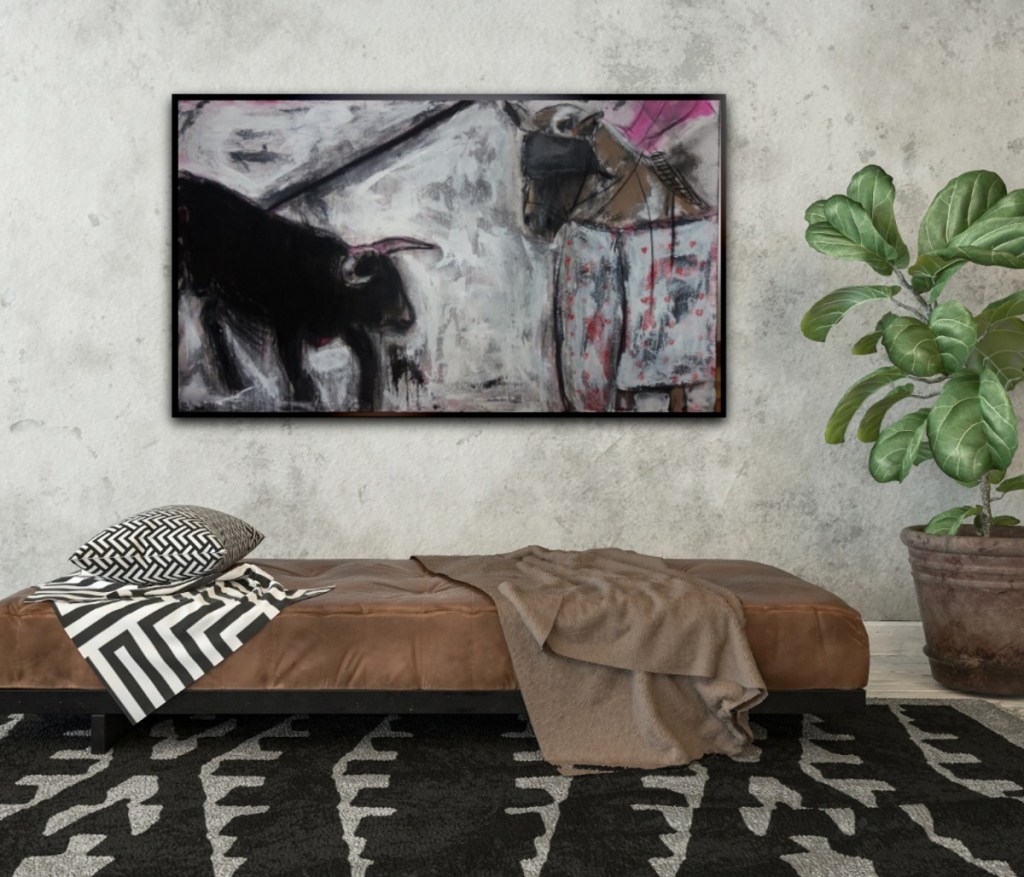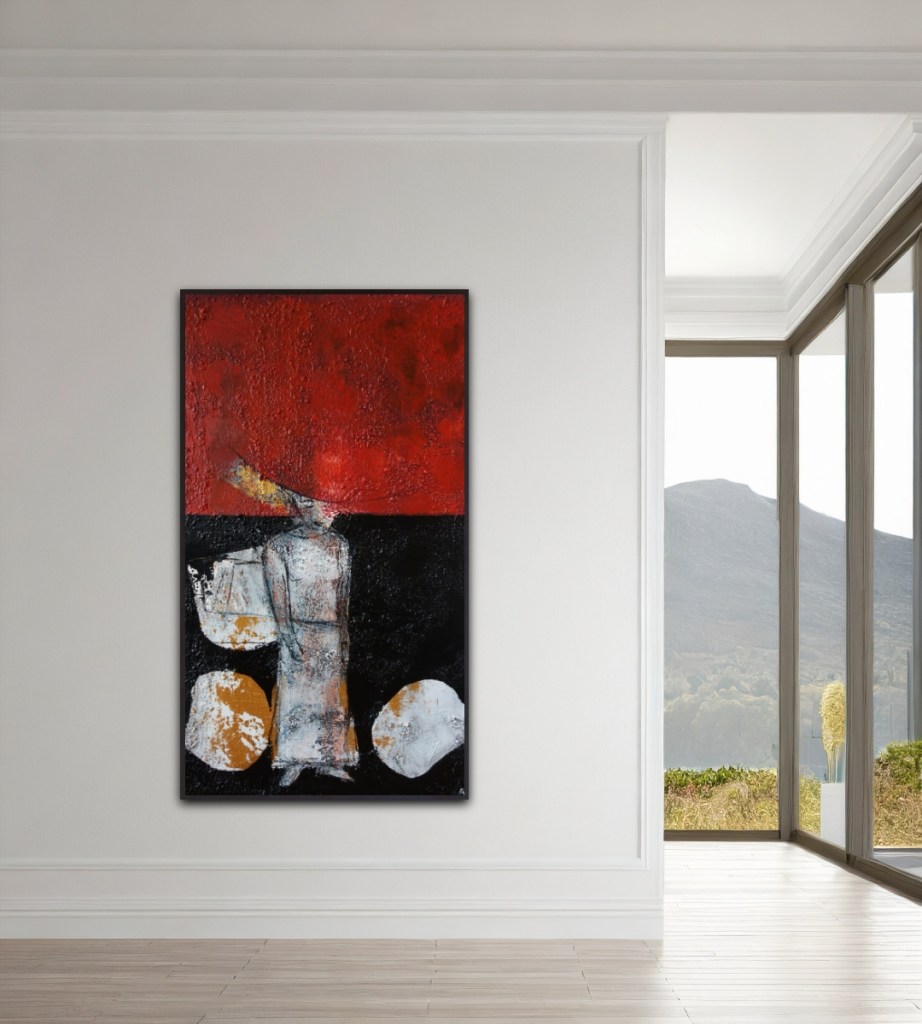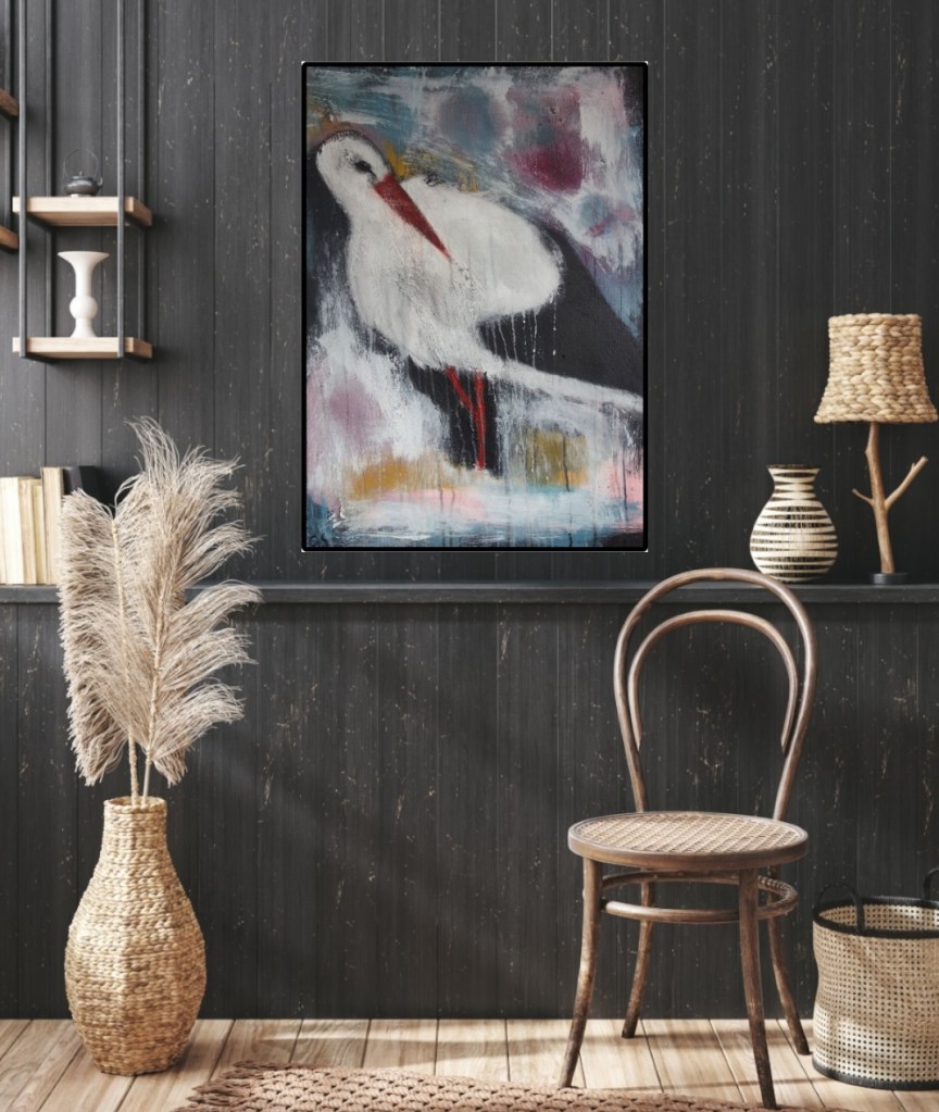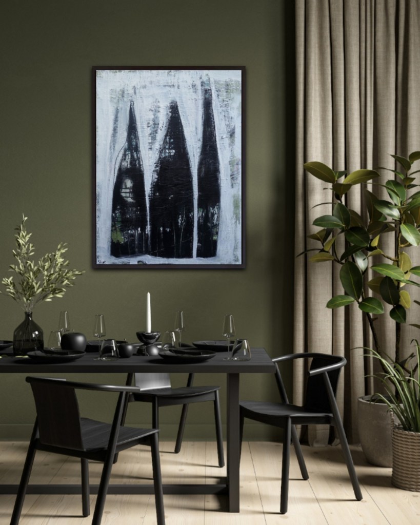 Bitte beachte: Die Bilder, die virtuell in Wohnräume eingefügt sind, dienen lediglich als Beispiel, um zu zeigen, wie die Kunstwerke im Raum wirken können – gegebenenfalls auch mit Zierrahmen.