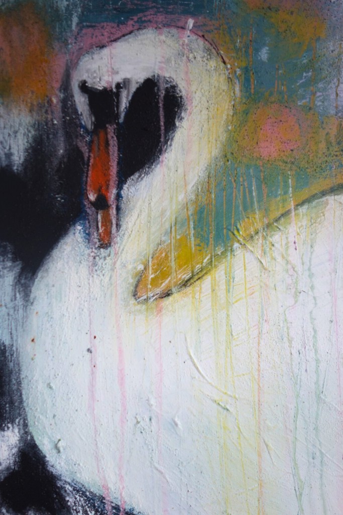 Am Rand des Weges steht er – der Schwan. Still, wachsam, als horche er auf die leisen Töne der Welt. Nur wenige Schritte trennen ihn vom Tümpel nebenan, wo Enten durch das Wasser gleiten und Libellen wie flirrende Gedanken in der Luft tanzen. Dorthin zieht es ihn. Dorthin, wo Frieden wohnt. Er sucht nichts als Ruhe – und scheint sie schon im ersten Blick gefunden zu haben.